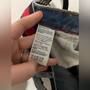 - Small flaw around the fly button and small stain under left pocket (as seen in pictures)