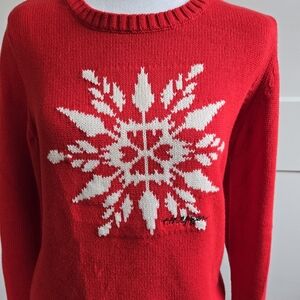 Tommy Hilfiger Womens Medium Red Cotton Snowflake Winter Sweater
