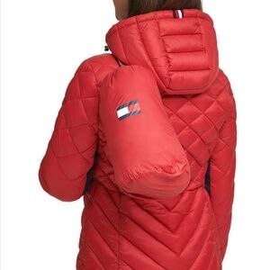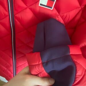 Authentic Tommy Hilfiger midweight puffer jacket in classic red. Designed for both warmth and style, perfect for cooler seasons.