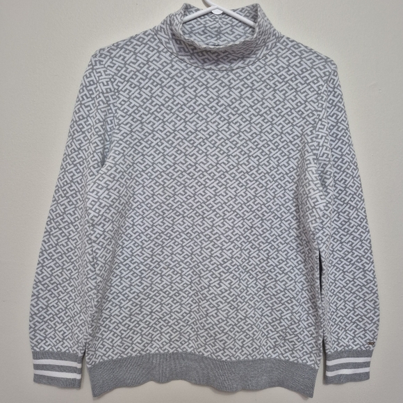Tommy Hilfiger Womens Preppy Grey Monogram Mock Neck Sweater – Size Large