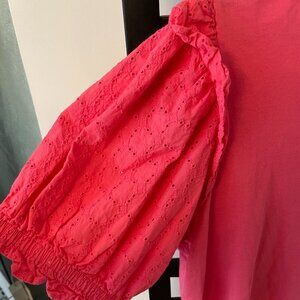 Tommy Hilfiger Women's Puff Sleeve Eyelet Top – Hot Pink (Large)