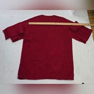 Slouchy 100% cotton pullover sweater with rolled hemline and sleeve hems. Cranberry red. flaw in fabric on lower right side. see pics. generous cut. med/lg