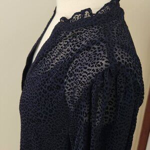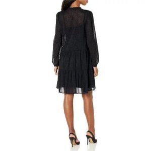 Tommy Hilfiger Women's Shift Chiffon Long Sleeve V-Neck Dress, Sky Captain/Black
