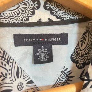 Tommy Hilfiger Womens Short Sleeve Button Down Shirt Size 6 – Black White Floral