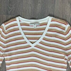 Tommy Hilfiger Women's Stripe Sweater V-neck Pullover Vintage 2000s Preppy