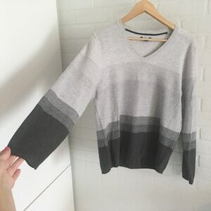 Tommy Hilfiger Women’s Sweater Knit 100% Cotton Ombre Gray Black V neck Sz XL