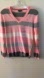 Tommy Hilfiger Women’s V Neck Sweater Size Small Pink Grey White Striped Cotton