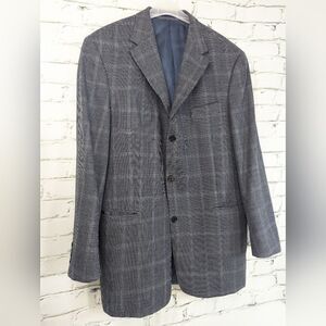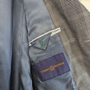 Tommy Hilfiger Wool sports coat, blazer jacket, Grey and blue houndstooth 44T