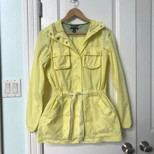 Snap button closures down the front, side and chest pockets, and drawstring waist