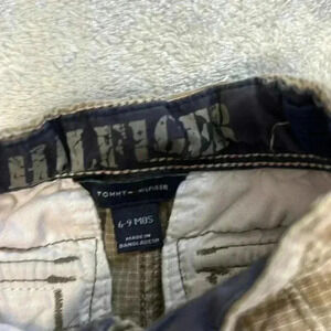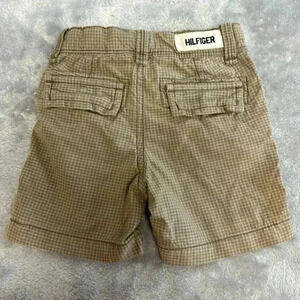 Tommy hilfiger - tan plaid shorts with front and rear pockets, belt loops, button closure.
