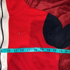 💙❤️Fun all year wear comfy Tommy Hilfiger fill zipper knit multi color cardigan jacket sweater Sz S approx measurements preloved peeling obvious tear flaw on back tag same day shipping from smoke free home
