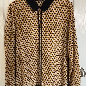 Tommy Hilfiger navy/yellow geometric blouse - size medium. 100% polyester. Very stylish and lightly worn.