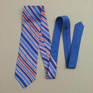 Tommy Hilfiger made in USA striped 100% silk tie blue orange stripes