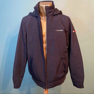 Tommy Hilfiger men’s hooded navy blue windbreaker jacket in size small
