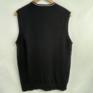 Tommy Hilfiger preppy argyle diamond pattern sweater vest black gray men medium