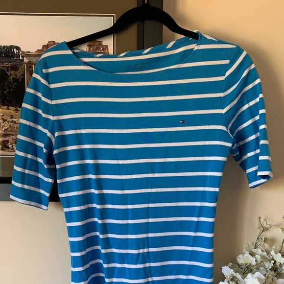 Worn once! Size medium blue & white striped Tommy Hilfiger top