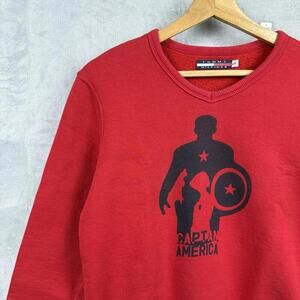 Tommy Hilfiger x Marvel Captain America Red V-Neck Sweatshirt Wmns Size L VTG