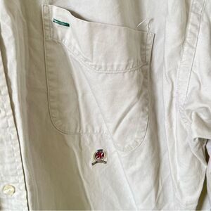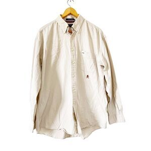 Tommy Hilfiger VTG Beige Lion Crest Logo Long Sleeve Button Down Dress Shirt