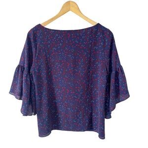 Tommy Hilfiger Navy Red Floral Print Scoop Neckline Bell Sleeves Blouse