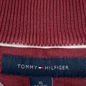 Tommy Hilfiger Men’s Grey Quarter-Zip Knit Sweater – Maroon Contrast Collar