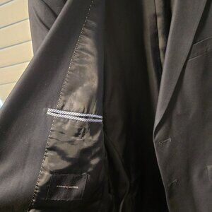 Tommy Hillfiger Navy Blue blazer dimensions shoulder width 19 inches, sleeve 26 inches, length 32 inches.