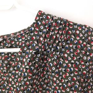 Tommy Jeans cute blouse with a vibrant floral-like pattern. Features kaki-gray, red, blue, and white colors, shoulder gathered stitch, three buttons on the front.