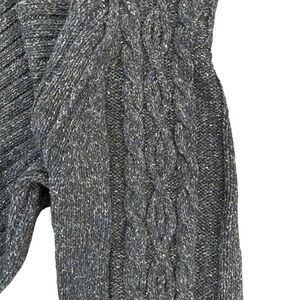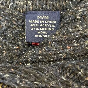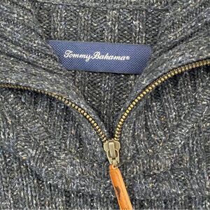Tommy Bahama Ribbed Knit Flecked Blue1/4 Zip Pullover Sweater. Men's M. 45% Acrylic, 37% Merino Wool, 18% Silk. Chunky ribbed knit pullover with cable knit sleeves. Very good used condition. Please see photos for approximate measurements.