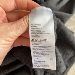 I love this dress but it no longer fits. It can be worn off the shoulder or as a cowl neck. Really soft material. Tiny tiny little spot near the bottom that isn’t noticeable.