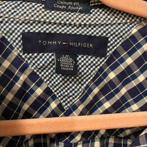 🌷 Tommy Hilfiger🌷Navy Blue & White Plaid Button Down Shirt