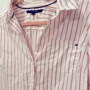 🌷 Tommy Hilfiger🌷Red Pink & White Striped Button Down Shirt