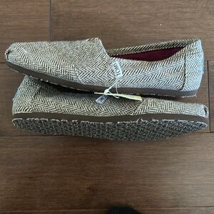 Toms Alpargata Slip-On BNWT Brown & Beige Chevron Pattern with Gold Accent Size 8.5
