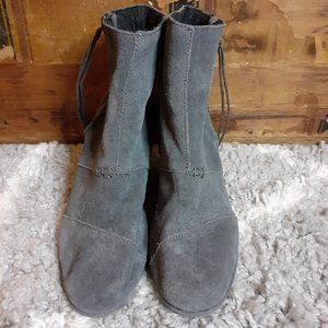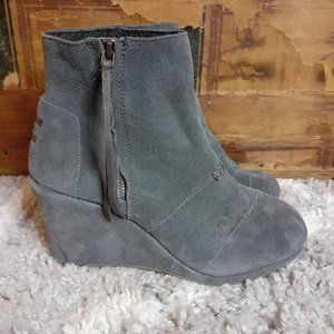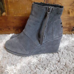 Toms Desert Wedge Bootie with tassel zip pull in gray suede. Classic, comfy fall bootie!