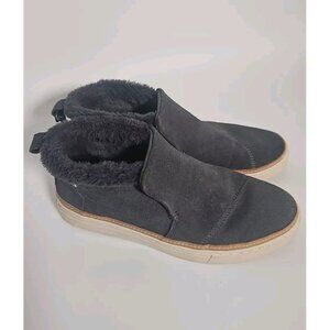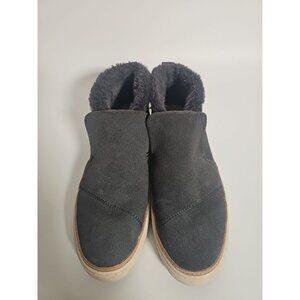Toms Comfort Shoes Womens Size 6.5W Gray Paxton Suede Faux Fur Lined Slip On