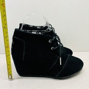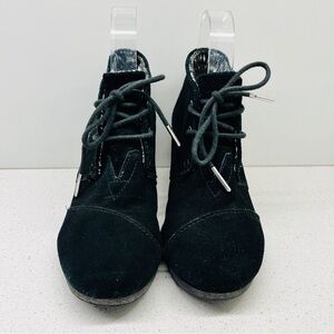 Toms Desert Wedge Bootie Ankle Black Suede Leather Lace Up Boots Shoes Sz 6 W
