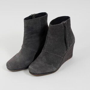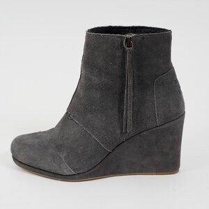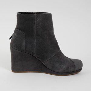 Toms Desert Wedge Grey Suede Side Zip High Ankle Boots Booties, Like New, Sz 8.5