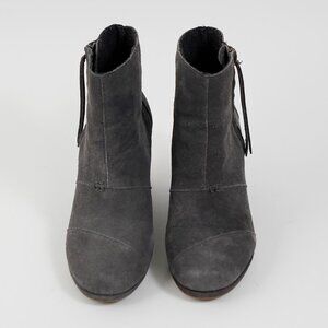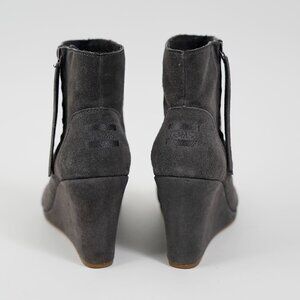 Toms Desert Wedge Dark Grey Suede Side Zip High Ankle Boots Booties, Like New