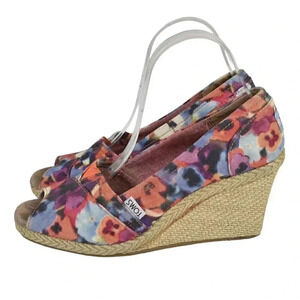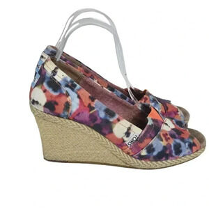 Toms Floral Wedge Sandal Multi Color Open Toe Espadrille Size 9