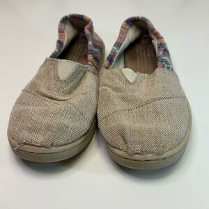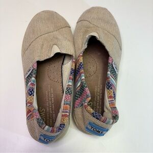 Toms Girls Size 2 Khaki Canvas Slip On Loafer Flats Youth Aztec Burlap Classic
