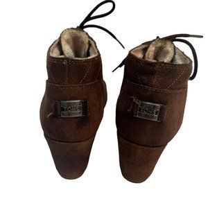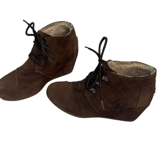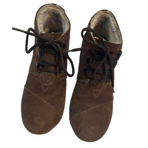 Toms Shearling Lined Lace Up Wedge Booties Brown Size 7.5
