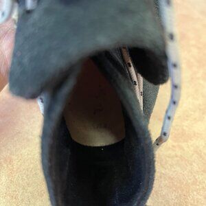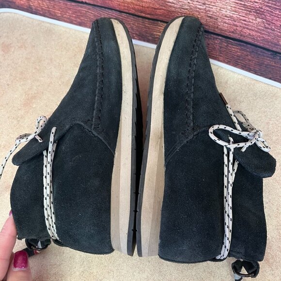 Two-tone round waxed cotton laces wrap around the ankle for a more secure fit.