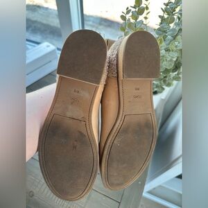 These Toms ankle booties in a sleek tan shade feature a minimalist design with elastic side panels for easy wear. The smooth leather upper and rounded toe offer a versatile and stylish look, perfect for any occasion.
