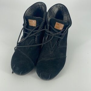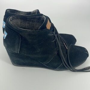 Toms Wedge Black Lace Up Suede Shoes Women’s Size 9 Comfort One for One Winter