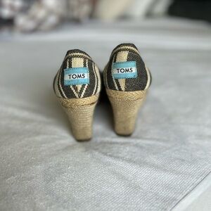 Elevate your style with Toms' chic wedge espadrilles. These slip-on shoes boast a comfortable jute wedge heel and a classic open-toe design, perfect for adding a touch of elegance to any outfit.