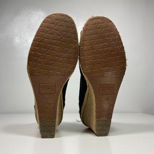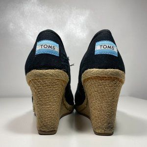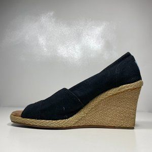 Toms Women Shoes Twill Espadrilles Cork Peep Toe Wedge Black Sz 7