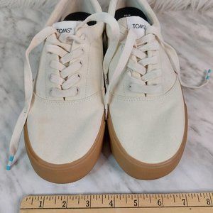 Toms Women's Cream Canvas Leopard Sole Trim Lace Up Running Shoes Sneaker Siz W9