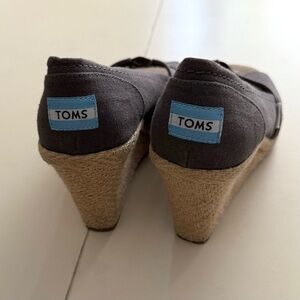 Toms Women's Gray Canvas Peep Toe Espadrille Wedge Sandals 8.5 Cottagecore Boho