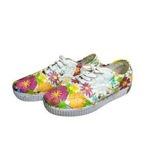 Toms Womens Lace Up Floral Stiff Canvas Sneaker Shoes Size 8 Fairy Dainty