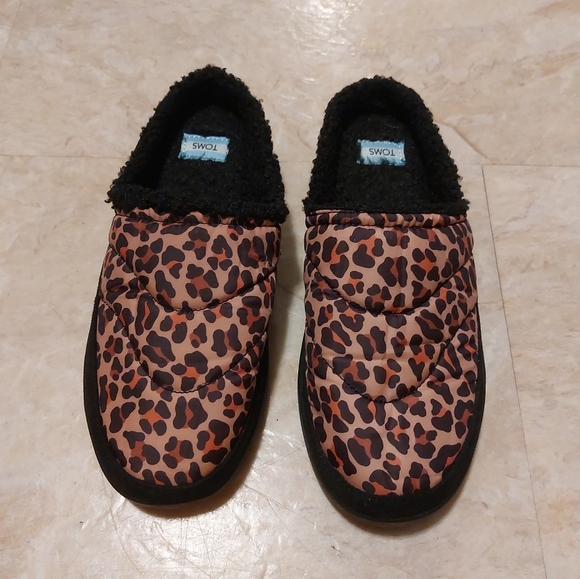 Toms cage mule slippers size 6.5, nylon front and faux fur inside in New condition.