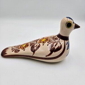 Tonala Mexican Pottery Hand Painted Bird Dove Pigeon Folk Art Mexico Signed Read