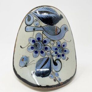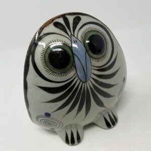 Tonala Owl Mexican Folk Art Pottery Figurine Hand Painted Bird & Flowers Design